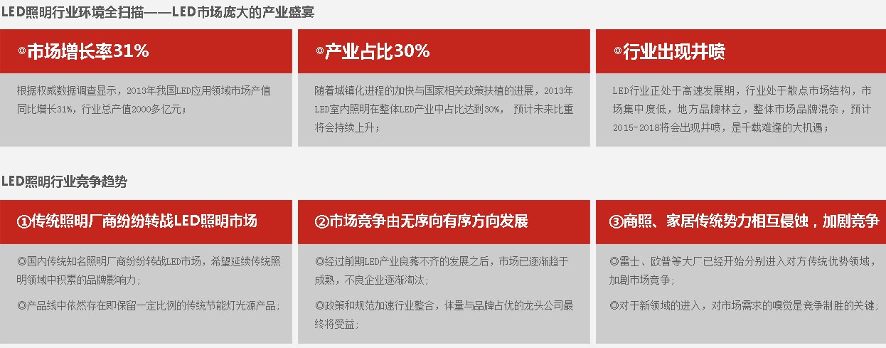 1、市場(chǎng)機(jī)會(huì):家居LED照明剛剛發(fā)力,尚無領(lǐng)導(dǎo)品牌扛旗;