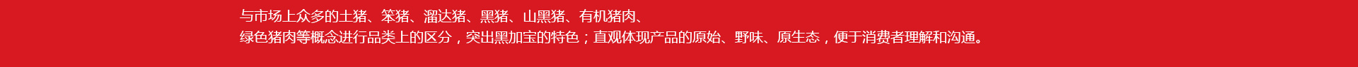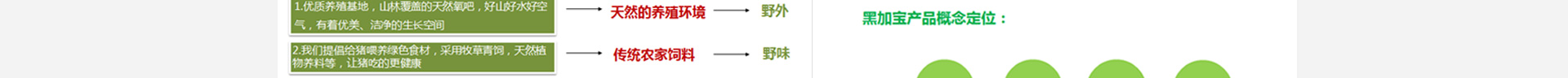 那么黑加寶的豬肉為什么是最野味香濃,最極品肉質(zhì)?這就要從黑加寶產(chǎn)品本身說起。黑加寶“四野”的養(yǎng)殖體系鑄就其極品肉質(zhì)、野味香濃;全程監(jiān)控、檢測體系及專業(yè)的配送體系讓黑加寶安全放心、品質(zhì)保證,這就是黑加寶的產(chǎn)品價(jià)值體系。
