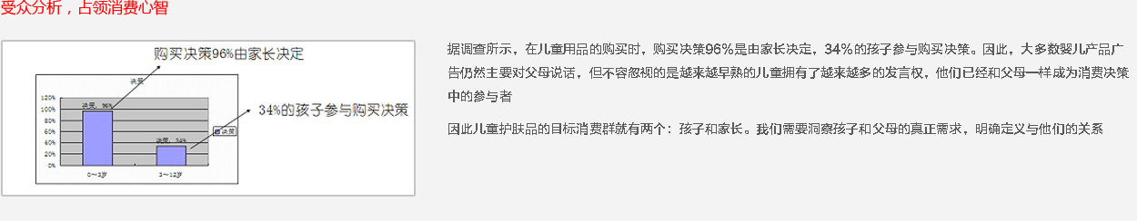 0-3歲嬰兒:這部分人群的消費(fèi)主要由他們的父母或親人完成(購(gòu)買決策96%由家長(zhǎng)決定)。