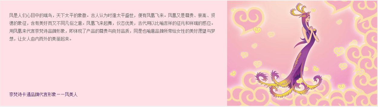 在化妝品行業(yè)市場(chǎng)上,還沒有真正意義上引入吉祥物的品牌,這是奈梵詩(shī)搶占消費(fèi)者心智資源的最佳時(shí)機(jī)。結(jié)合奈梵詩(shī)“美的使者”的品牌形象定位和概念,中擂設(shè)計(jì)了名為“鳳美人“的虛擬品牌形象代言。