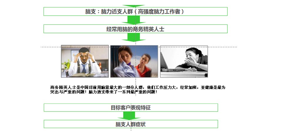 即經(jīng)常用腦的商務(wù)精英人士 。以這個(gè)群體為典型,通過(guò)目標(biāo)群體來(lái)影響其他群體。這樣可以整合更多資源聚焦該群體,精準(zhǔn)撬動(dòng)市場(chǎng)。
