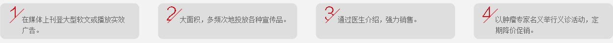 每月可舉行至少一次的小型咨詢活動,以臧堃堂、南方醫(yī)科大學名醫(yī)為主,也可以邀請當?shù)氐哪[瘤專家免費開展講座為患者咨詢,會場可以不促銷產(chǎn)品,但必須大面積擺放產(chǎn)品及相關資料的介紹。