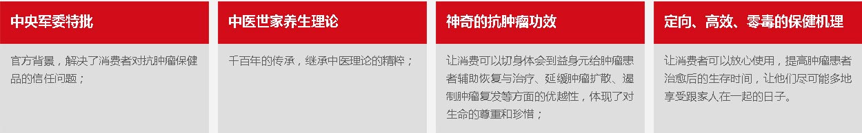 在生命的尊嚴面前,所有的承諾和安慰都變得如此無奈,只有找到切實可行的治療方法或者藥物,才能激發(fā)換種重生的信念,減輕親人因害怕失去的痛苦,花多少錢已經(jīng)成為一個符號。選一款信得過的抗腫瘤保健品,擺脫腫瘤給患者本人和家庭親人帶來的痛苦與無助,是益身元的目標消費者最主要的需求!
