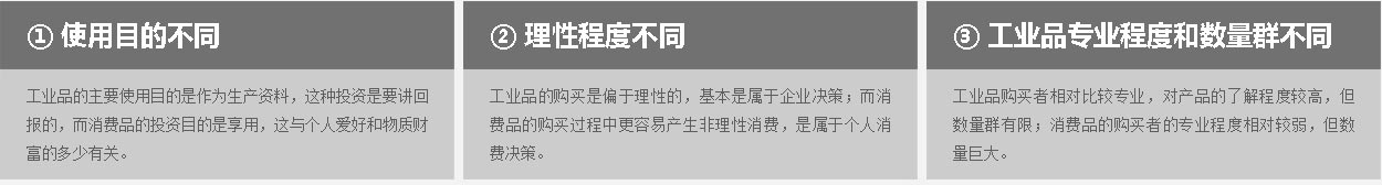 品牌是什么?營銷界給下的定義太多,我們比較接受的是:品牌是針對目標(biāo)客戶(客戶)而建立的感情需求,直白地講,是客戶(客戶)的心理感受。這一點(diǎn)上,工業(yè)品品牌與消費(fèi)品品牌是基本相同的。但是品牌建立途徑和方式方法卻有較大的差異。這差異主要源于以下幾個方面: