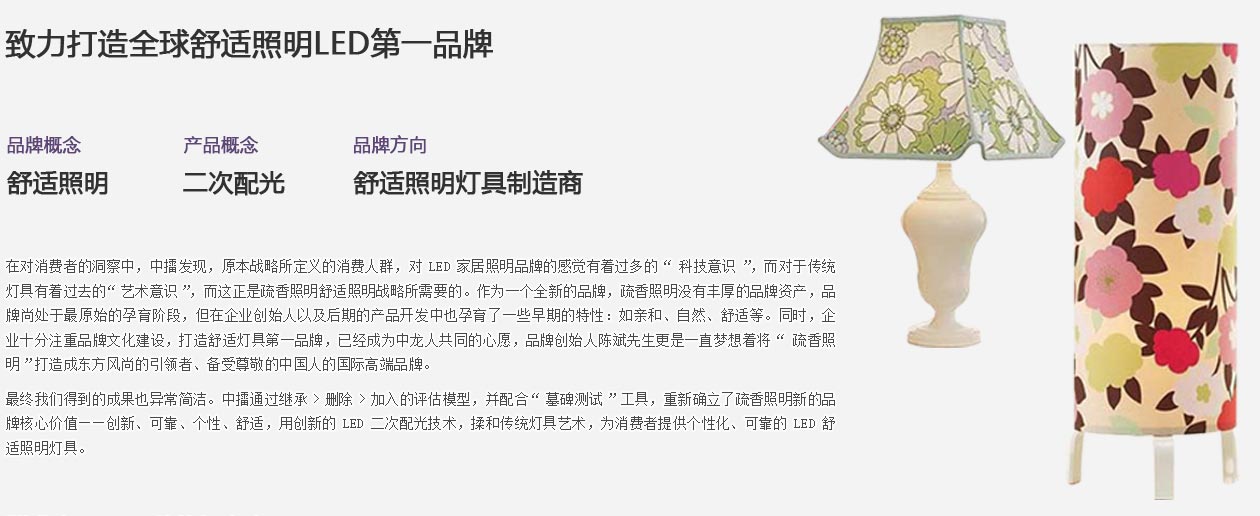 本案,從中龍科技的品牌戰(zhàn)略入手,在對其品牌架構梳理的基礎上,重點著力打造中龍科技旗下家居照明品牌——疏香照明。