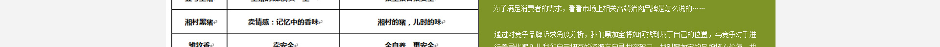 黑加寶合理利用我國特有的地方豬種資源,開發(fā)放心、安全、優(yōu)質(zhì)、營養(yǎng),風(fēng)味獨(dú)特的高檔豬肉產(chǎn)品,并使之品牌化,受到了消費(fèi)者的歡迎,擁有廣闊市場前景。但在同質(zhì)化、混亂的品牌競爭環(huán)境下,黑加寶想要取得更大的發(fā)展,必須要建立起自己差異化的品牌定位和完整的品牌形象,才能在未來的競爭中處于優(yōu)勢地位!